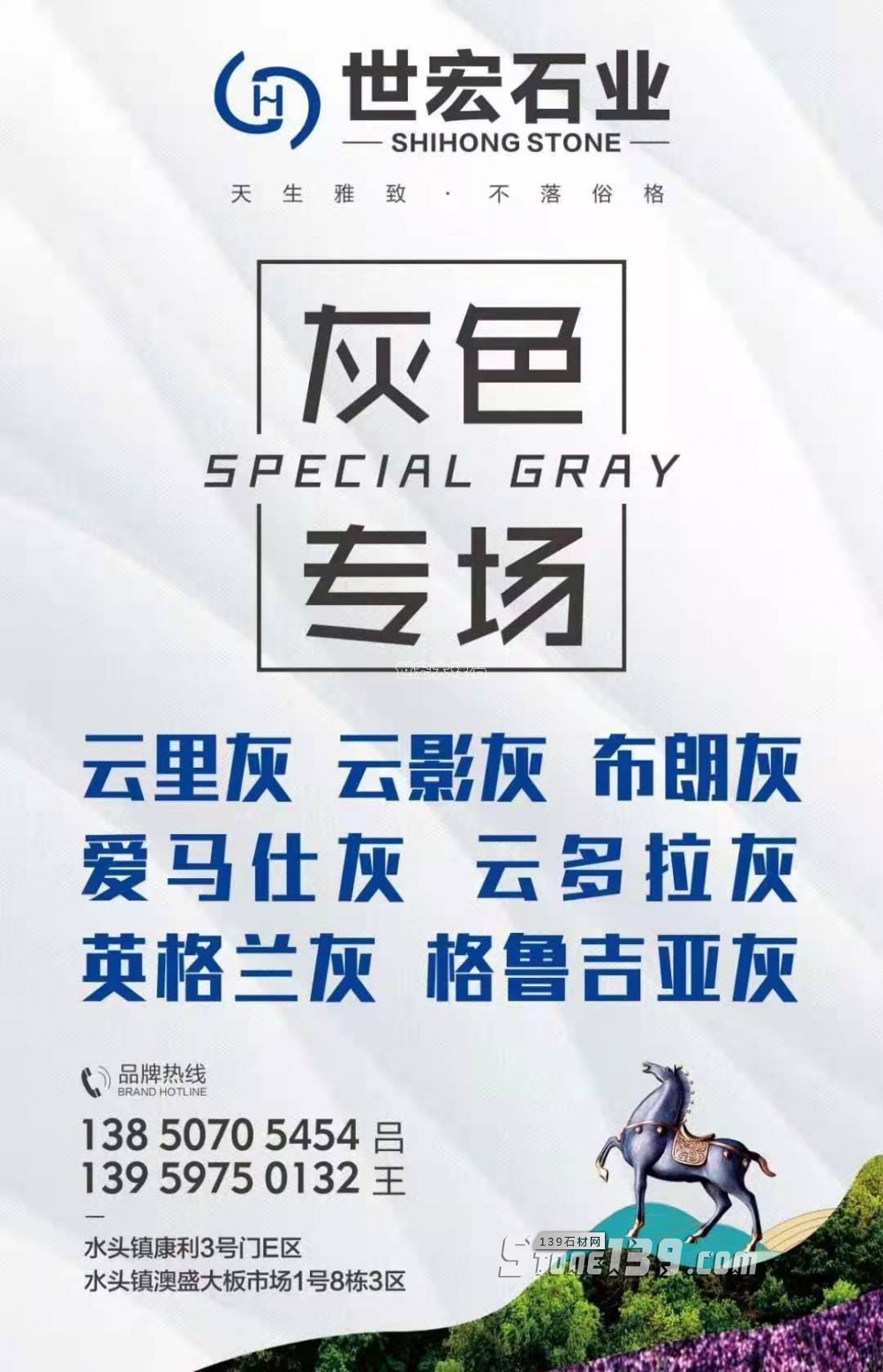世宏石業(yè)灰石專(zhuān)場(chǎng)(云里灰 云影灰 布朗灰 愛(ài)馬仕灰 云多拉灰英格蘭灰 格魯吉亞灰 )大理石主營(yíng)大理石銀狐、意大利灰、意大利米黃、格魯吉亞灰、云里灰(云多拉灰)