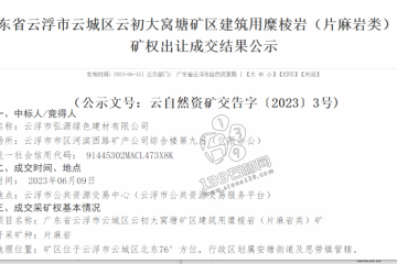置頂云浮市云初大窩塘礦區的建筑用糜棱巖礦采礦權進行拍賣