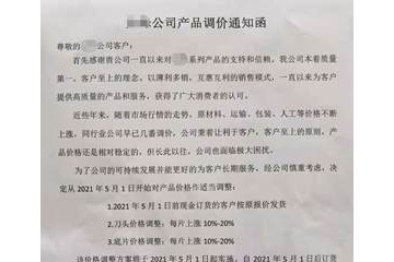福建XX機械有限公司產品調價通知函尊敬的客戶:您好!感謝貴公司長期以來對xx的信賴與支持XX全體員工在此深表感謝!在未來的日子里,還望能與貴公司繼續保持良好合作,攜手前進。長時間以來,由于鋼材、鑄件等各種原…