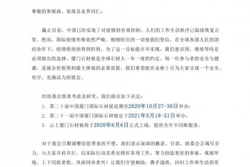 重磅!中國廈門國際石材展將延期至明年舉辦! 以下是官方通知廈門展延期舉辦也是一波三折。。。希望疫情早點過去