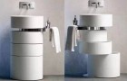 alessandro isola設計的可以旋轉的大理石水槽 ,冷白色的大理石界面,整齊地堆疊在一起,形成了一個簡潔的圓柱形水槽。當你沿著它的金屬軸點轉動時,每個圓柱形隔斷就會被旋轉出來,可以用來掛毛巾和肥皂盤,存儲…