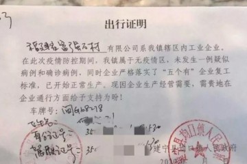 出行證明福建省富強石材有限公司系我鎮(zhèn)轄區(qū)內工業(yè)企業(yè)。在此次疫情防控期間,我鎮(zhèn)屬于無疫情區(qū),未發(fā)生一例疑似病例和確診病例,同時企業(yè)嚴格落實了“五個有”企業(yè)復工標準,已開始正常生產(chǎn)。現(xiàn)因企業(yè)生產(chǎn)經(jīng)營需…