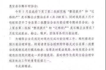 為了踐行黨的十九大提出的綠色發展理念,進一步規范和加強石材加工企業的安全環保管理,最大限度的減少和杜絕安全環保事故的發生,搞好安全生產和清潔生產,促進石材行業的綠色健康持續發展、實現建設美麗中國的…