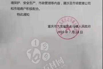 重慶市九龍坡區走馬鎮人民政府關于開展走馬石材市場綜合整治的通知各石材石材管理公司、石材市場各商戶(公司): 我鎮將立即開展針對石材市場的綜合整治工作,包括環境保護,安全生產,市政管理等內容,請設計市…