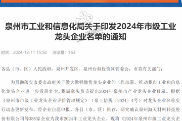 置頂《2024年泉州市工業龍頭企業名單》石材企業入選名單