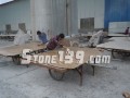 板材切割好后,根據不同的石材,有一部分需要進行刮膠和背網。板材的加固分成:板材背面的背網加固,板材表面的滲透加固兩種方式。