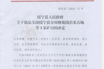 湖南韶山市人民政府關于依法關閉云源采石場等3家礦山的決定
