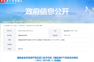 11月21日,福建省自然資源廳、發改委、工信廳、財政廳以及生態環境廳5部門聯合發布《福建省礦產資源總體規劃(2021-2025年)》(以下簡稱《規劃》),明確至2025年全省礦山總數控制在1000個以內,海砂采礦權數控…