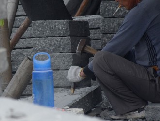 置頂芝麻黑G654石材菠蘿面的加工(手工敲打)過程圖