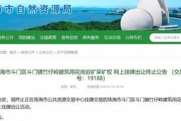 日前,珠海市發布《進一步促進投資增長的若干措施》,2020年春節前夕突然終止出讓的斗門鎮竹仔嶺建筑用花崗巖礦又有了新消息,將加快出讓。2019年12月4日,珠海斗門竹仔嶺建筑用花崗巖礦發布出讓公告,設計利用資…