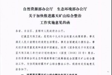 6月6日,自然資源部官網(wǎng)發(fā)布了《自然資源部辦公廳 生態(tài)環(huán)境部辦公廳關(guān)于加快推進(jìn)露天礦山綜合整治工作實(shí)施意見(jiàn)的函》。各省、自治區(qū)、直轄市人民政府辦公廳:  打贏藍(lán)天保衛(wèi)戰(zhàn),是黨的十九大作出的重大決策部署…