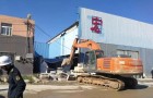 昨日(10月17日),城陽區天安路華東物流工業園內,在陣陣轟鳴聲中,多處違法建筑被現場拆除。此次拆除的違法建筑大部分為一些石材企業的加工車間。上午9時30分許,在執法人員監督下,挖掘機來到1處藍色彩板房前…