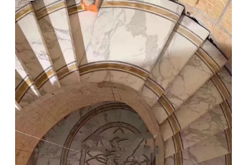 置頂旋轉樓梯用石材裝飾的裝修施工現場