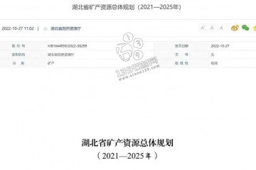 近日,湖北省自然資源廳發布《湖北省礦產資源總體規劃(2021-2025年)》(以下簡稱《規劃》)。《規劃》提出,到2025年底,資源利用效率達到新水平。礦山結構進一步優化,力爭2025年底有效正常生產礦山總數不超…