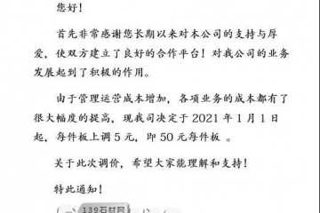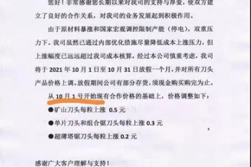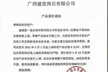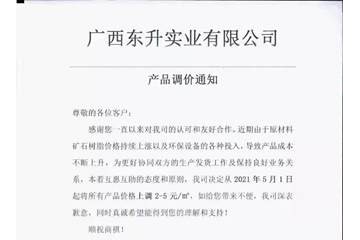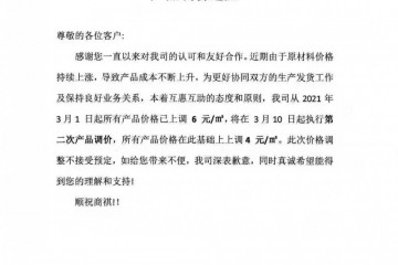 尊敬的各位客戶:感謝您一直以來對我司的認可和友好合作。近期由于原材料價格持續上漲,導致產品成本不斷上升,為更好協同雙方的生產發貨工作及保持良好業務關系,本著互惠互助的態度和原則,我公司決定從2021年3…