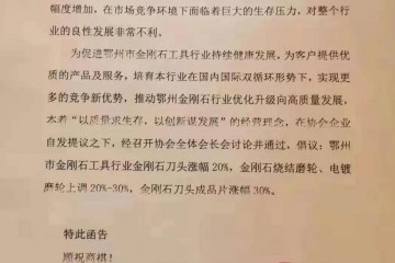 銅鋁鐵鋅鋼大幅上漲,石材輔料金剛石行業漲幅30%,必將導致石材漲價,早買早發財!行業聯盟倡議函尊敬的各位同仁:受國內外經濟形勢及疫情等影響,2020年以來金剛石、金屬粉末、基體、石墨模具等原材料價格持續上漲…