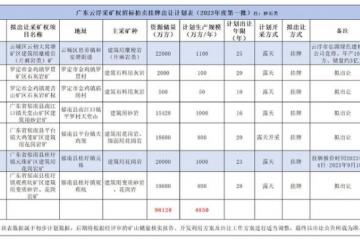廣東云浮又一超級大礦掛牌出讓。7月23日,廣東云浮市公共資源交易信息化平臺發布郁南縣桂圩鎮元珠礦區建筑用花崗巖、變質砂巖礦采礦權掛牌出讓公告。該礦確定建筑用石料礦開采儲量1.87億方,設計年產1000萬方,出…