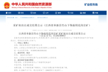 置頂江西省宜春市奉新縣竹山下飾面用花崗巖礦采礦權(quán)成交
