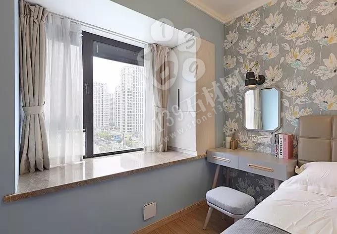 飄窗窗臺的材料,耐用很重要!大理石結實、耐用,壽命長!天然的紋路賦予它獨特的裝飾性效果;不怕曬,偶爾雨天有點雨水進來也沒什么關系;防潮性能好。