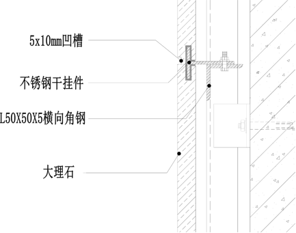 9、石材掛點部位背網需鏟除,墻面設計為砂巖類石材時,要注明表面作透氣式防污處理,砂巖類石材工藝縫表面盡量避免用膠填縫修復處理。