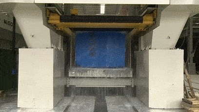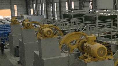 另一邊,工人師傅們正忙著裝修室內、設備調試、粉刷毛板背膠,施工現場一片熱火朝天的繁忙景象。龍溪石材廠廠長黃東升說,現在我們項目基本上是處于一個試運行階段,已經調試設備三四臺,基本上可以正常生產,現在大概有4000到5000方毛板產出。
