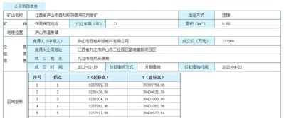 2021年07月06日,江西省廬山市西牯嶺飾面用花崗巖礦采礦權以掛牌方式出讓,根據《中華人民共和國礦產資源法》《中華人民共和國拍賣法》/《中華人民共和國招標投標法》《礦產資源勘查區塊登記管理辦法》/《礦產資源開采登記管理辦法》《礦業權交易規則》,以及《國務院辦公廳關于印發整合建立統一的公共資源交易平臺工作方案的通知》等相關規定,現將成交結果公示如下: