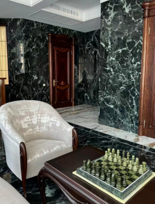 它擁有黃色金屬般的不規(guī)則紋路,遠(yuǎn)看像閃閃發(fā)光的金子,里面含有大量的鐵元素,可以把磁鐵石吸附在石材表面。