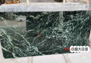 紋理特點(diǎn):底色相對于印度大花綠較淺,有不規(guī)則的白色或淺綠色根狀粗紋,像綠野中流淌的河流。