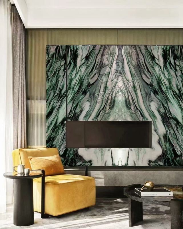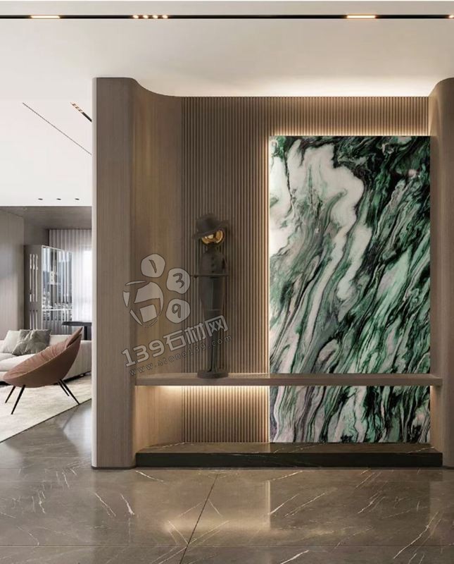 極具觀賞性的臺面使它在家具中深受追捧,挪威森林綠在燈光的折射下散發出別樣的神秘魅力,宛若星辰熠熠生輝。