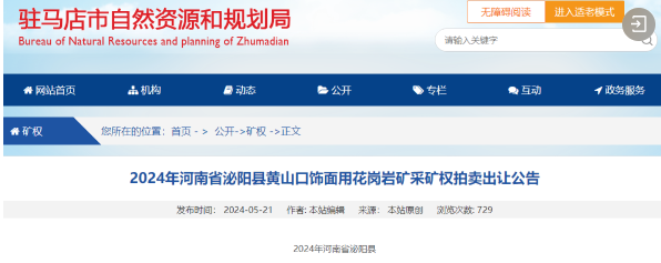 相關(guān)閱讀:2024年河南省泌陽(yáng)縣春水飾面用花崗巖礦采礦權(quán)拍賣(mài)出讓公告