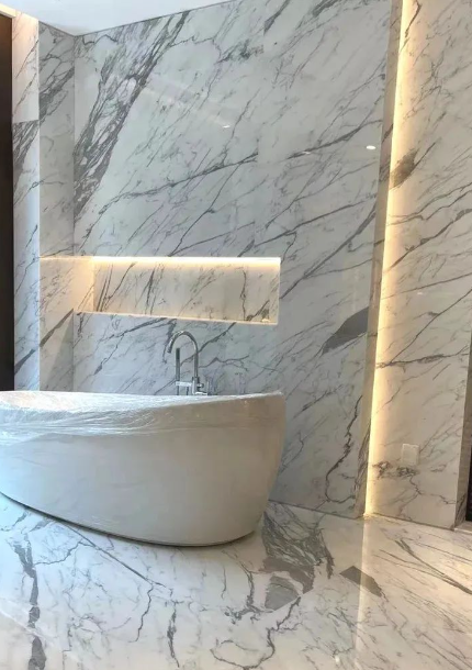 雪花白大理石是一種高檔的裝飾材料,常用于高檔場(chǎng)所的內(nèi)部裝飾。在廚衛(wèi)空間中,雪花白大理石因其純凈的色彩和良好的光澤度,能夠營(yíng)造出高雅和奢華的氛圍。以下是一些雪花白大理石廚衛(wèi)空間的案例:
