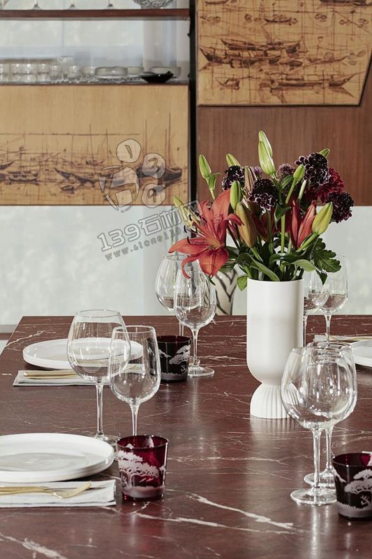 室內裝置:定制紫羅紅大理石茶幾、邊柜臺面,或作為藝術擺件的基底材質。