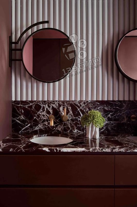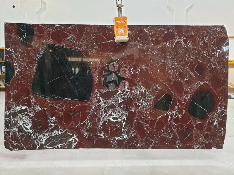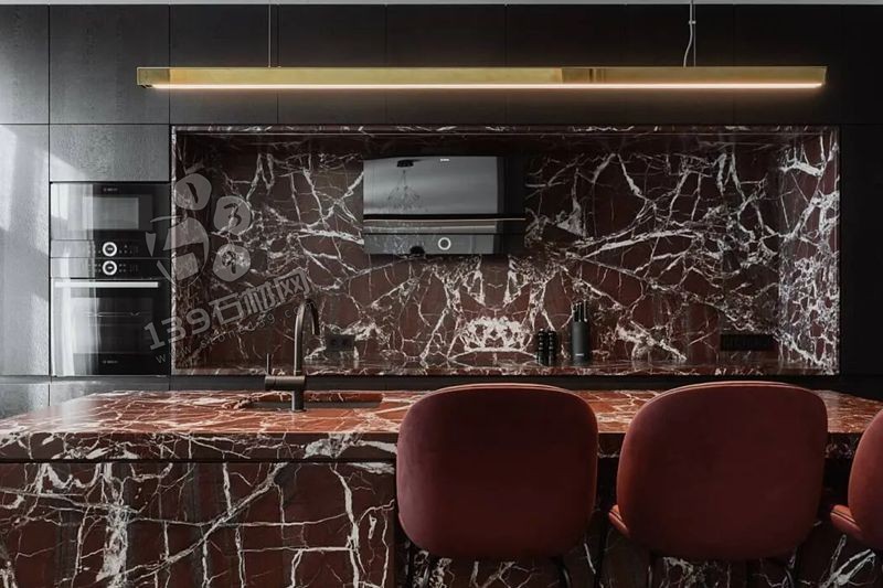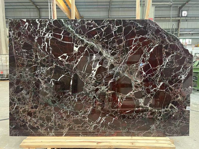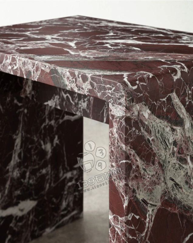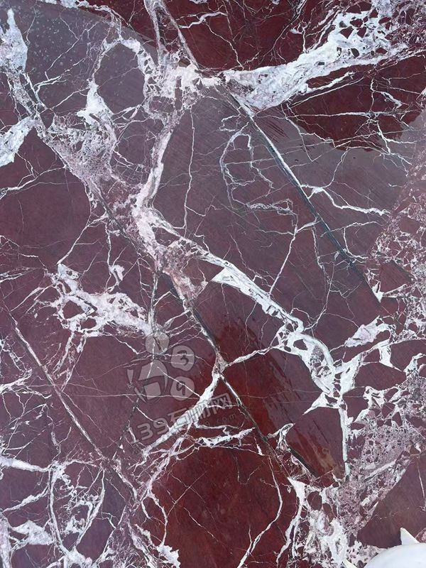 看這方土耳其大理石——深紅底色沉得像大地,邊角還洇著點紫調,白紋理突然“跳”上來,紅白撞出猛一眼的驚艷!