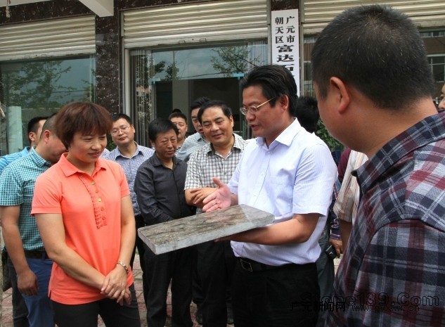 廣元七盤關國際石材城歡迎臨是領導考察,詳細介紹板材的情況