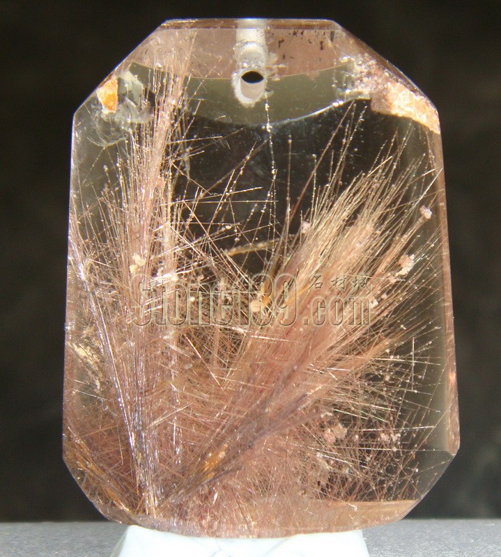 5、水晶:是一種無色透明的大型石英結晶體礦物。它的主要化學成份是二氧化硅。化學式為SiO2。水晶呈無色、紫色、黃色、綠色及煙色等。玻璃光澤。透明至半透明。硬度7。性脆。無解理。在自然界中,水晶常呈晶簇產出,造型美觀。結晶完好的水晶,常有好的平行脊的人字形斷口;內涵網狀金紅石,細密的發絲柔柔纏繞,又稱紅兔毛水晶(也稱維納斯水晶),紅發晶是有網狀結構的金紅石,很像細密的發絲柔柔纏繞,因而又稱紅兔毛水晶或針狀金紅石。