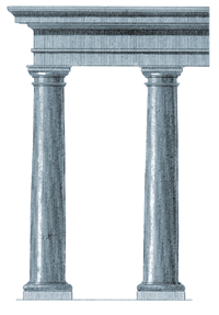 塔司干柱式其實(shí)就是去掉柱身齒槽的簡化多立克柱式,柱礎(chǔ)是較薄的圓環(huán)面。柱高跟柱徑的比例是7:1,柱身粗壯。