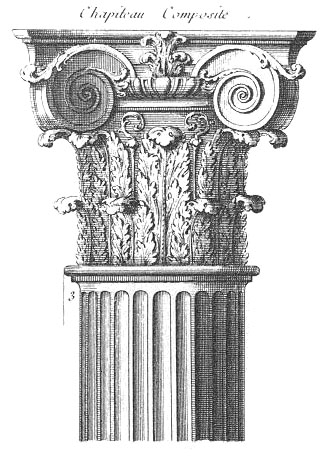 這種柱式是將科林斯柱式的頂端與愛奧尼克柱式的渦卷相結合,使形狀顯得更為復雜、華麗。柱高跟柱徑的比例是10:1,顯得纖細秀美?;旌鲜绞?400年意大利文藝復興時期的建筑師阿爾貝蒂提出的。