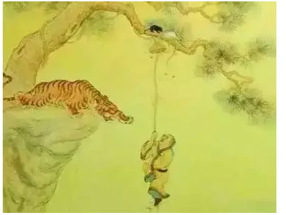 有一個人在森林中漫游的時候,突然遇見了一只饑餓的老虎,老虎大吼一聲就撲了上來。他立刻用生平最大的力氣和最快的速度逃開,但是老虎緊追不舍,他一直跑一直跑一直跑,最后被老虎逼入了斷崖邊上。