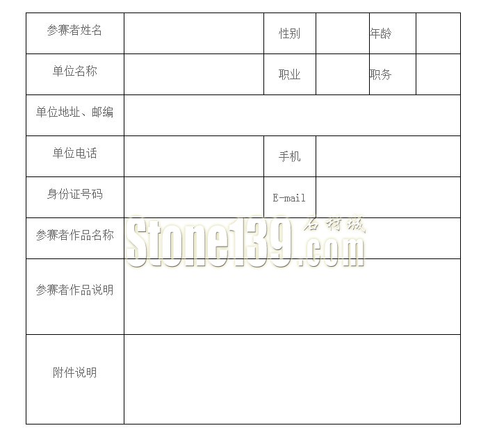 2015全國(guó)石雕石刻設(shè)計(jì)大賽報(bào)名表