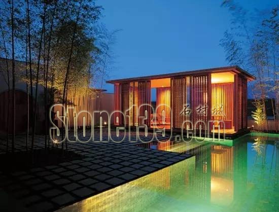 素受東方文化熏染的KerryHill,用他對中國水墨畫的理解,建構了這座“中而新”的涵碧樓。2002年涵碧樓開幕,世人驚艷。整個建筑物就是一幅中國水墨畫,所有的建筑、裝飾無不勾畫出橫與豎的線形,巧妙地糅合了木、石、玻璃和鐵四類風格迥異的建材,再加上燈光與日光的融合,坐落在山水之間,充滿了中國傳統的簡約和禪意,讓人一見傾心。