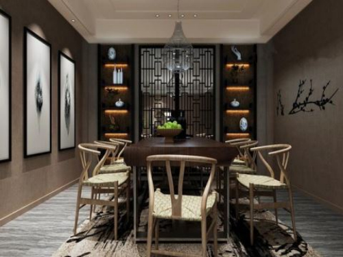 2.建材運(yùn)用——(1)實木,建議使用酸枝木或大葉檀等高檔硬木,做成花板、條案、長椅圈椅、羅漢床等等,木是打造中式風(fēng)格最重要的建材;(2)大量使用中式圖紋元素的裝飾擺件,字畫、匾幅、掛屏、盆景、瓷器、古玩、屏風(fēng)、博古架等都是不錯的選擇;
