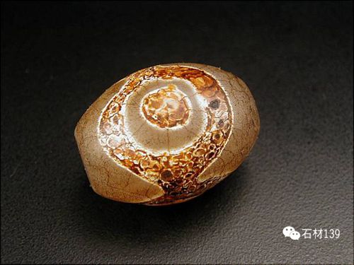 二:瑪瑙紋眼石珠。也是一種火成巖天眼珠,由于成巖時的紊流及地質地理環境而造就。在各種沉積中都有存在,由于風沙水流搬運億萬年而質色各異,不乏珍品。