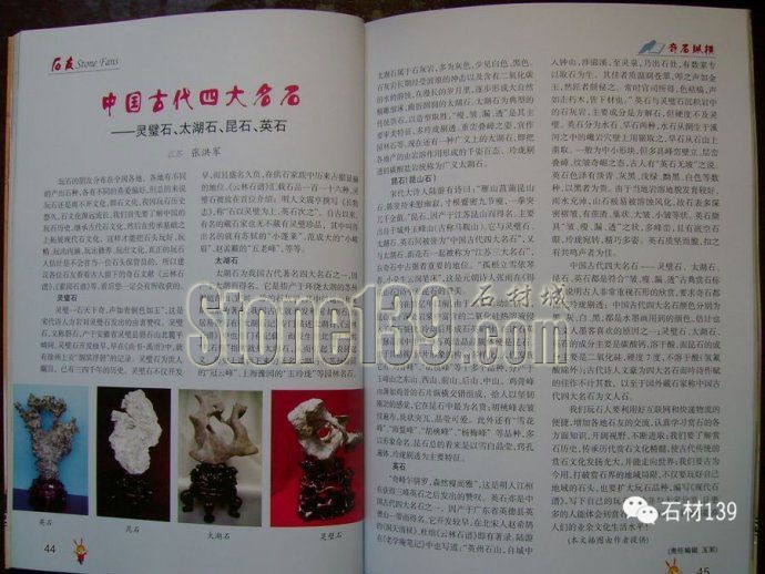 中國古代四大名石---靈璧石、太湖石、昆石、英石都是符合“皺、瘦、漏、透”古典賞石標(biāo)準(zhǔn),說明古人非常重視石形的欣賞,要求奇石都比較玲瓏剔透;中國古代四大名石顏色分別為黑、灰、白、黑,都是水墨畫用到的顏色,估計也是文人墨客喜歡的原因之一;靈璧石、太湖石、英石的成分主要是碳酸鈣,溶于酸,而昆石的成分主要是二氧化硅,硬度7度,不溶于酸(氫氟酸除外);古代詩人文豪為四大名石而吟詩作賦的佳作不計其數(shù),以至于國外藏石家稱中國古代四大名石為文人石。