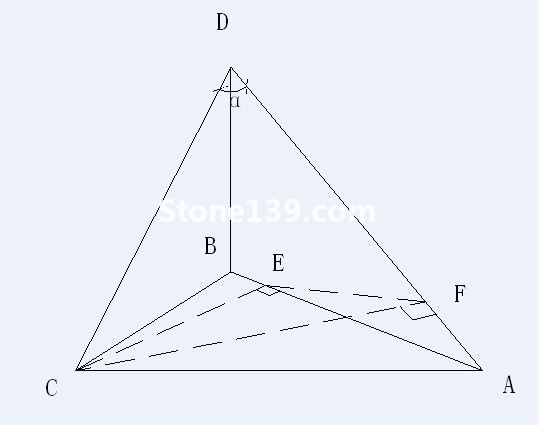其中<CAB為圓柱的傾斜角。<EFC為刀切面ADB和底面ACD的夾角,即刀扳角,則需證明EF⊥AD。