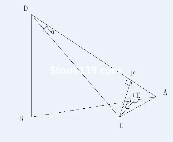 在RT△CEF中:tgβ=EF/CE推出tgβ=(AC*DB)/(AD*BC)=sinα*(DB/BC);