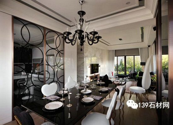 黑白對比的客廳裝飾-銀白龍大理石桌面和雪花白墻面