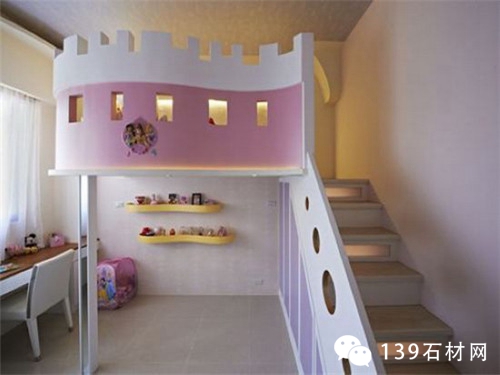 充分發揮先天樓高條件的絕對優勢,以童話夢境般的城堡夾層,實現女孩專屬的浪漫天地。融入流線弧度下的天花造型,與極富童趣的門片花案,不假修飾的浪漫氛圍,讓人怎能不愛!