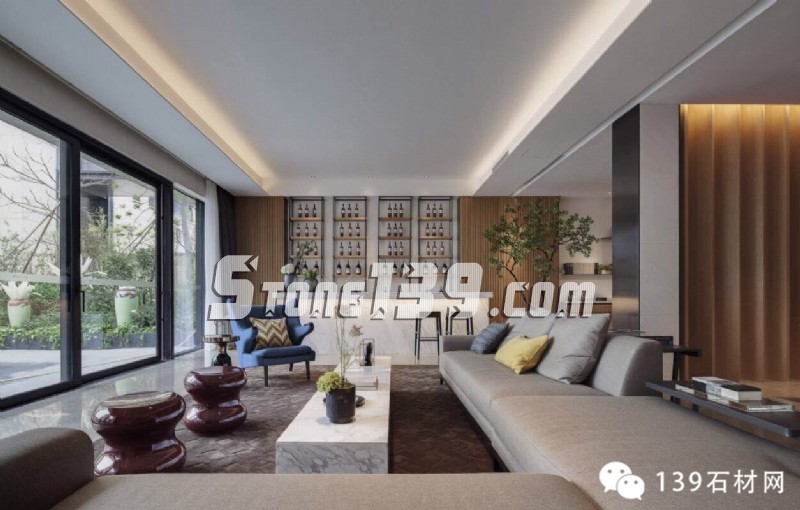 270平現代新中式風格聯排別墅裝修石材與實木的遇見