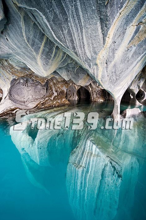 這些大理石巖洞座落于智利南端的偏遠地區。為了到這里觀光,游客必須從首都圣地亞哥搭乘飛機,前往最近的大城市科哈依克,相距800英里(約合1287公里),而后乘車穿過泥濘的道路,來到卡雷拉將軍湖南部200英里(約合321公里)處。