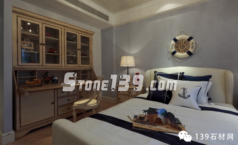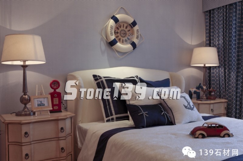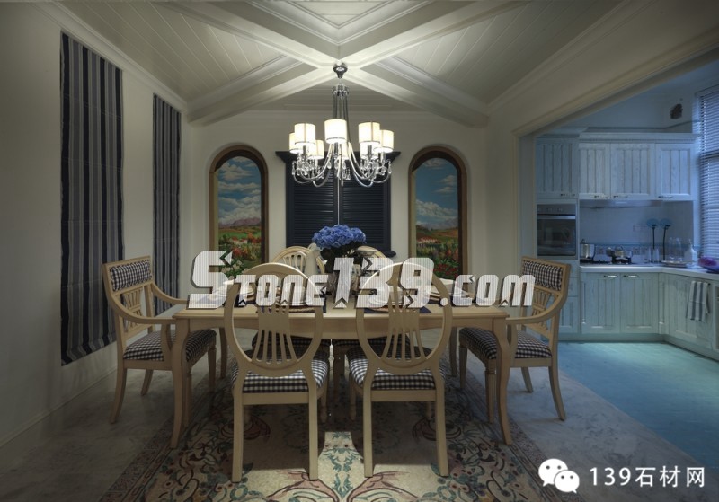 明快的藍(lán)、純凈的白讓人產(chǎn)生溫暖的情感,隨意精致的燈飾讓空間增添光影之余,更映襯出整個(gè)空間洋溢著愜意、輕快之調(diào)。看那溫和的綠草地磚,在廚房、化妝間和浴室之間顯得如此清爽,配上清雅的墻面瓷磚和掛畫擺設(shè),現(xiàn)代飲食男女更是喜歡在這種明快、浪漫、溫馨的氛圍中,在刀、叉、杯、碟輕碰中歡聲細(xì)語(yǔ),釋放兩者之間的“尺度關(guān)系”。